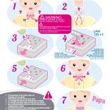 A baba valódi csecsemőt utánoz nevetéssel és „mama” és „papa” szavakkal, mikor a mellkasára nyomunk.
