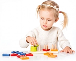 Az elemek tüskékre fűzése erősíti a szem–kéz koordinációt, a fogás pontosságát és a koncentrációt – kulcskészségek az óvodáskorban.