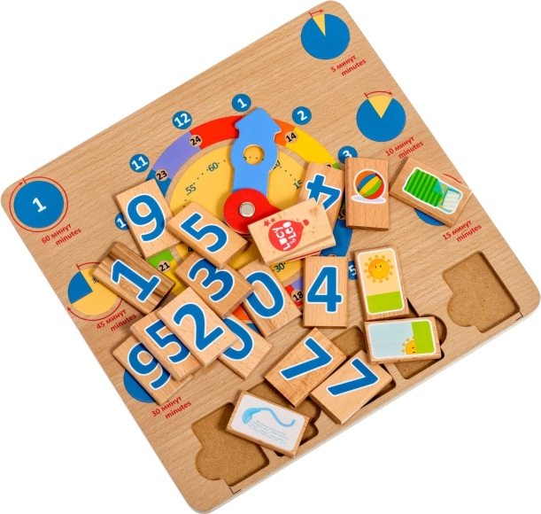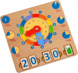 A Tanuljuk az órát fa játéktábla kiváló didaktikai eszköz, amely támogatja a természetes, játékon keresztüli tanulást. A nagy, színes mutatók és a jól elkülönített időszegmensek megkönnyítik a gyerekek számára az órák, percek és a napi tevékenységek konkrét időpontokhoz kötésének megértését.