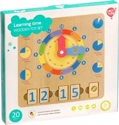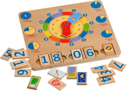 A készlet része 14 számos blokk és 6 képes blokk a napi tevékenységekhez. Négy időblokk beilleszthető az előkészített nyílásokba a digitális idő kirakásához, míg az ötödik blokk a megfelelő tevékenységet ábrázolja. Így a gyerekek vizuálisan kapcsolják össze az analóg órát a digitális kijelzéssel és a megszokott napi rutinnal.
