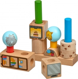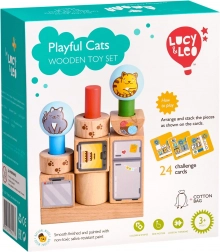 Tartós fa formák finoman csiszolt felülettel és illusztrált cicás valamint háztartási motívumokkal. Ideális a kis gyerekkezek számára.