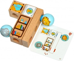 A készlet 24 mintakártyát tartalmaz, amelyek a gyerekeket az egyszerűbbtől a bonyolultabb összeállításokig vezetik. Remek a logika és a koncentráció fejlesztésére.