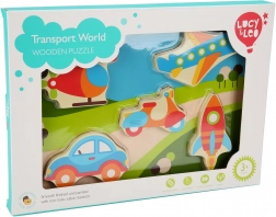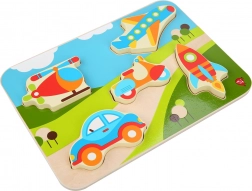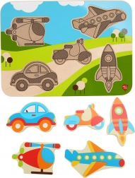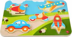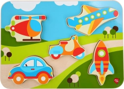 Ez a minőségi fa beillesztős puzzle közlekedési témával élénk színeivel és áttekinthető formáival hívja fel magára a figyelmet. Az elemeket a gyerekek könnyen megfogják és a helyükre illesztik. Egyes darabok a vastagságuknak köszönhetően önállóan is megállnak, így a gyerekek a táblán kívül is játszhatnak velük.