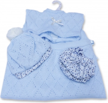 A 26 cm-es újszülött baba ruha tartalmaz egy pulóvert, egy sapkát és egy bugyit. Úgy tervezték, hogy maximális kényelmet és eleganciát biztosítson a babával való játék során. A csomagolás egy finoman kötött takarót is tartalmaz, amely kiegészíti az összképet. Ez a készlet átlátszó csomagolásban van műanyag vagy karton vállfával.