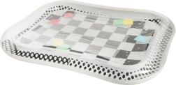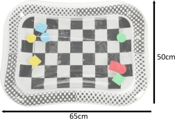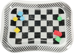 A szőnyeg fekete-fehér sakktábla mintával rendelkezik, amely természetesen felkelti a gyerekek figyelmét és segít serkenteni a látás érzékelését.