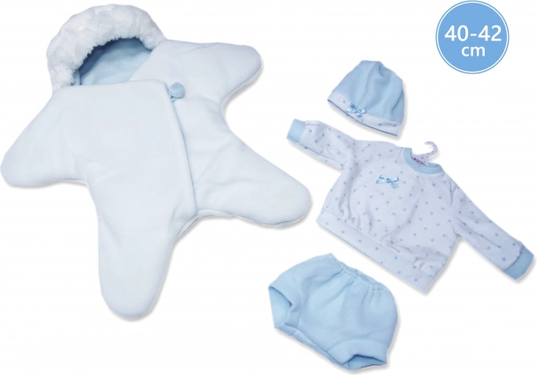 Kényeztesd babádat meghitt, bájos kialakítású ruhával. Ez a 3 részes készlet kétoldalas polár csillagoverált és harmonizáló kiegészítőket tartalmaz, amelyek együtt meleg és kényelmes öltözéket alkotnak minden „anyás” játékhoz. Az univerzális szabás a 40–42 cm-es NEW BORN babákhoz illeszkedik.