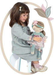 A PROVENZA plüss baba egy kicsi, szépen felöltöztetett kislánybaba, amely a névadó kollekció része. A 2022-es újdonság többféle babakocsit is kínál. A rendkívül gazdagon díszített, provanszi romantikus stílusú kollekcióra a nagyon világos rózsaszínes árnyalat, finom apró virágmintával, valamint a víztükörre emlékeztető világos türkizeszöld szín jellemző. A baba díszdobozban érkezik, egy ötletes, 2 az 1-ben, átlátszó fedelű csomagolásban, amelyből könnyedén kényelmes bölcsőt lehet készíteni. A baba kiváló minőségű, sima, fényes plüssből készült, és mosható (kézi mosás 30 °C-on). Méreténél és pehelykönnyű súlyánál fogva ideális társa minden kislánynak, nemcsak utazáshoz, hanem a puha anyagának köszönhetően az ágyban való összebújáshoz is kellemes. Méret: 36 cm. Ajánlott életkor: 12 hónap +.
