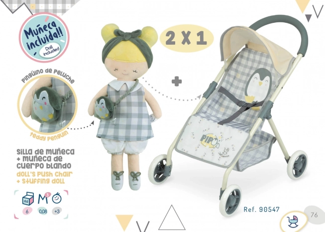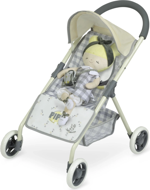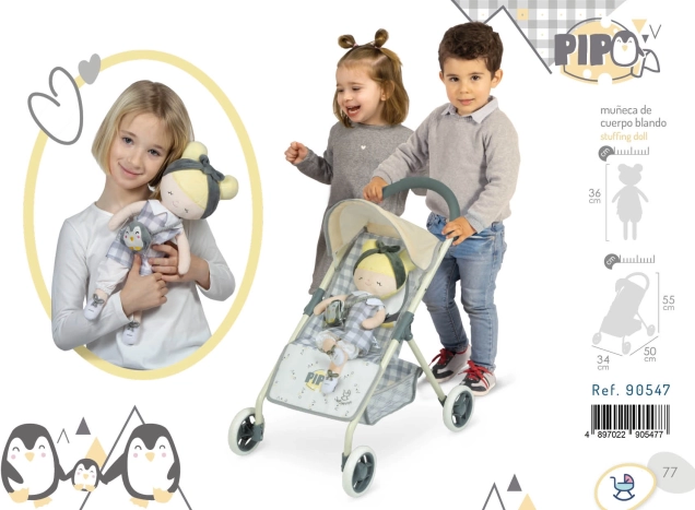 DeCuevas Játék babakocsi plüss babával PIPO 2022 a 2022-es új kollekció része, amely minőségi és stílusos kiegészítőket hoz a jövő háziasszonyainak. Ez a babakocsi elegáns spanyol dizájnjával és precíz megmunkálásával tűnik ki. Könnyen kezelhető, amit értékelni fog játék közben és tároláskor is.
