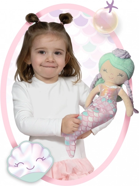Fedezze fel a varázslatos világot az Óceán Fantázia plüss babával, amely a levehető ruhazatnak köszönhetően átalakul egy kis sellőből kislánnyá. A baba kiváló minőségű fényes plüssből készült és ideálisan illeszkedik az ölbe a 36 cm-es méretének köszönhetően.