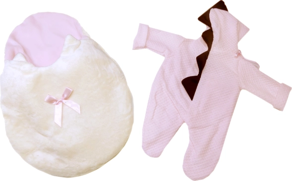 Dinoszaurusz stílusú baba ruha, ideális 3 éves kortól. Az újszülött babákhoz, 43-44 cm-es méretben készült, meleg és kényelmes környezetet biztosít a polár hálózsáknak köszönhetően.