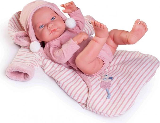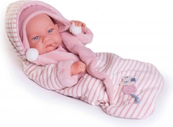 Ez a kézzel készült spanyol baba egy újszülöttet ábrázol, rendkívül élethűen kidolgozott csecsemőredőkkel és anatómiai részletekkel. A teljes test lágyított vinilből készült, amely puha tapintású és strapabíró a mindennapi játék során. A baba fürdethető – ügyeljen azonban arra, hogy a szempillák ne ázzanak el.