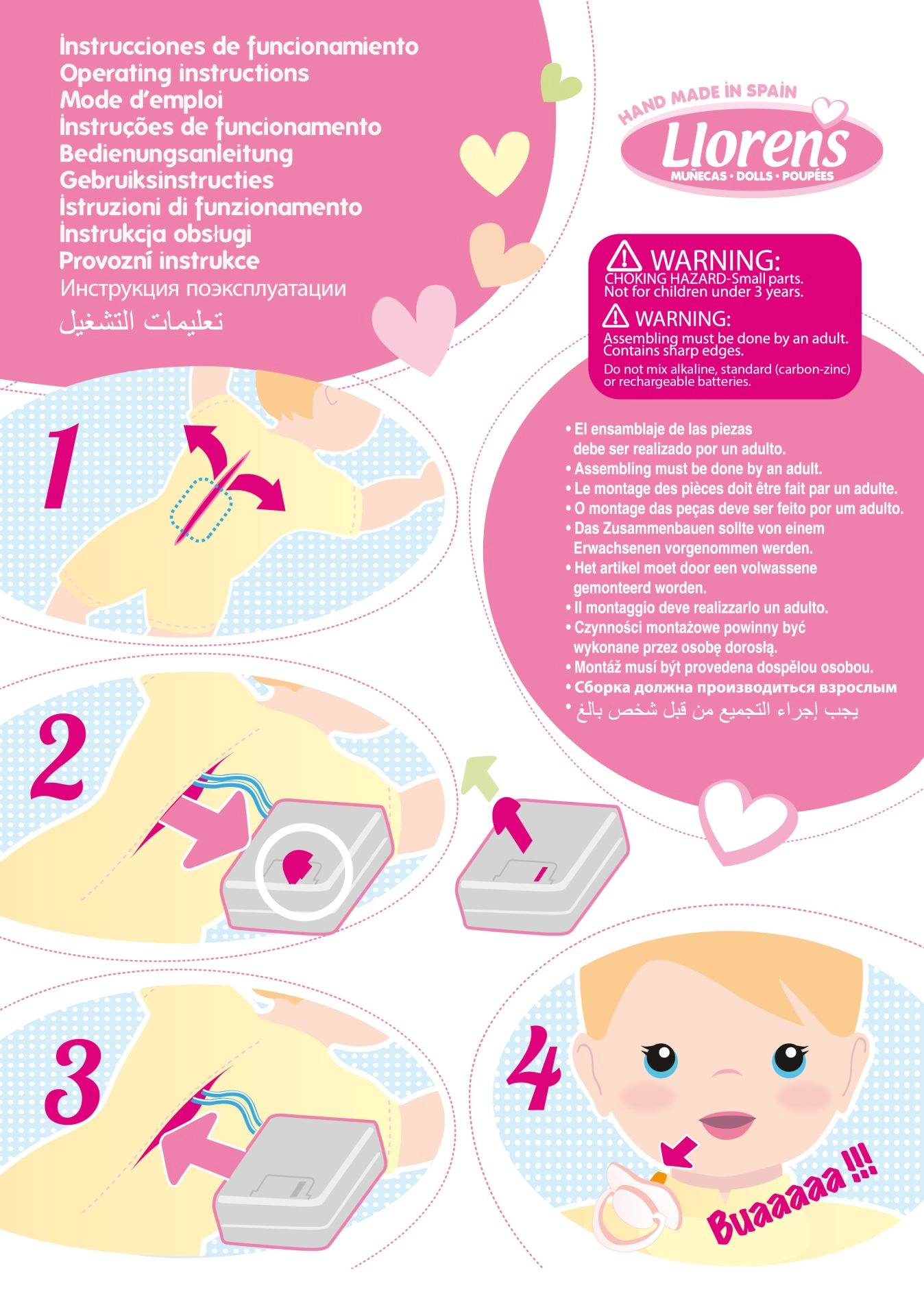 A 33 cm-es Llorens Roberta baba ideális társ játékhoz és a gyermeki fantázia fejlesztéséhez. A mágneses cumi eltávolítása után „mama”, „papa” hangokat mond, és valósághű síró hangot ad ki, amelyet a cumi visszahelyezésével könnyen meg lehet nyugtatni. A puha textiltest ölelgetésre alkalmas, míg a puhított vinil fej és végtagok természetes hatást keltenek és kellemes tapintásúak.