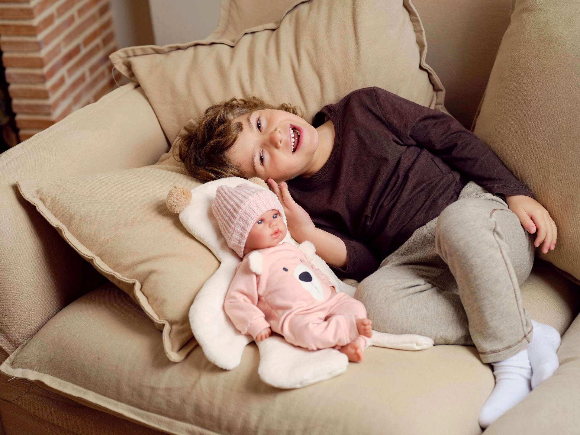 A textil test gyengéd és könnyű, ideális az ölelgetéshez és a mindennapi játékhoz. Ennek köszönhetően a baba a kisebb gyerekek számára is kellemes társ.