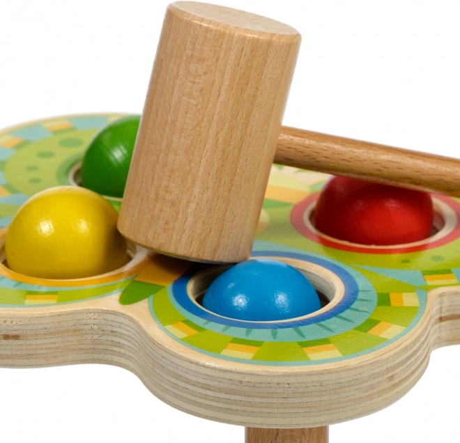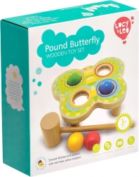 Szórakoztató fa kalapálós játék pillangó formában, négy színes golyóval, amely fejleszti a finommotorikát, a kéz–szem koordinációt és a koncentrációt. A gyerekek kalapáccsal a megfelelő színű nyílásokba ütögetik a golyókat – biztonságos, tartós és látványos játék természetes fából.