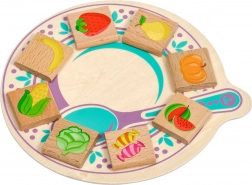 A gyerekek a lapkákat a tányérra vagy a kosárba helyezik, és természetes módon sajátítanak el fontos ismereteket a világról. Ideális óvodásoknak.