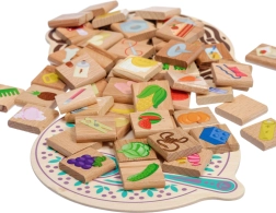 Ez az átgondolt montessori eszköz megtanítja a gyerekeket megkülönböztetni, mi ehető és mi nem. A fa alaplapokon egy tányér kanállal és egy fonott kosár látható, ahová a gyerekek a gyümölcsöket, zöldségeket, édességeket vagy italokat ábrázoló lapkákat, illetve kulcsokat, villanykörtéket, tűket vagy ceruzákat tesznek. A játék természetes módon fejleszti a világ megismerését, a koncentrációt és a kommunikációs készségeket.