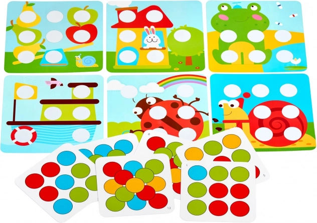 Tartalmaz perforált képeket és színes sablonokat a táblán való kirakáshoz – a gyerekek követhetik a mintát vagy alkothatnak saját fantáziájuk szerint.