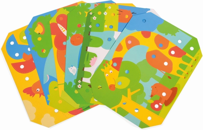 A készlet 12 színes állatos képet és 6 kétoldalas sablont tartalmaz, amelyek számos kreatív lehetőséget kínálnak.