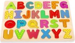 Fedezze fel, milyen szórakoztató módon tanulhatják meg a gyerekek az ábécét ezzel a minőségi fa kirakóval. Minden betű jól áttekinthető és könnyen megfogható, így fejleszti a finommotorikát és az alakfelismerést. Ideális óvodásoknak 3 éves kortól és az első betűismerkedéshez. Nagybetűk, masszív fa alaplap és biztonságos kivitel CE tanúsítvánnyal.