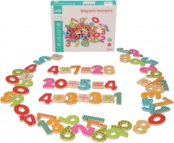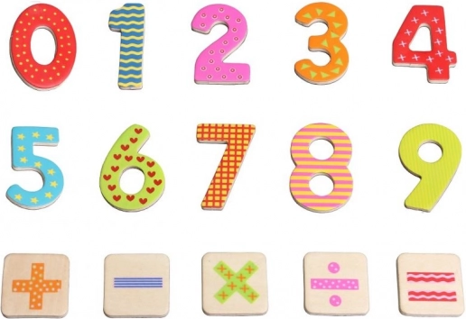A készlet változatos fa számjegyeket és alapvető matematikai jeleket tartalmaz. A gyerekek könnyedén raknak össze egyszerű feladatokat és tanulnak számolni.