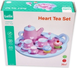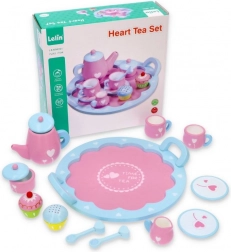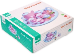 Ez a minőségi, fából készült teáskészlet szívecskés motívummal ideális kis házigazdáknak. Masszív kivitelének és kellemes színeinek köszönhetően tökéletes a mindennapi játékhoz, a kommunikációs készségek fejlesztéséhez és a kéz–szem koordináció gyakorlásához.