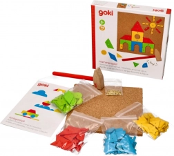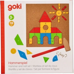 Lepje meg gyermekeit a Goki beütős játék Vidám házikó játékkal. Ez a készlet színes geometriai alakzatokat tartalmaz, amelyeket a gyerekek beüthetnek a parafa táblába egy kis fa kalapács segítségével. Ez az oktatójáték támogatja a finommotorikát és a kreatív gondolkodás fejlődését.