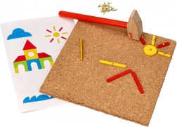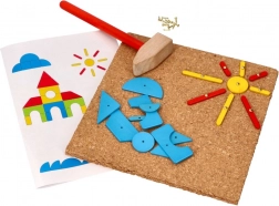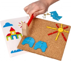 A gyerekek finommotorikája és kéz-szem koordinációja javul a különféle formák és képek összeállításával a parafa táblán.