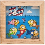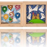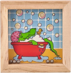 A neves GOKI márka Golyó a lyukba játéka egy hagyományos rejtvény, amely órákra leköti a gyerekek figyelmét: