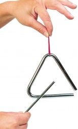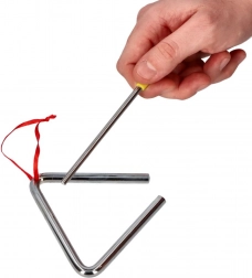 Tartsd a triangulumot a piros zsinórnál, és finoman üsd meg az ütővel – még a kisebb gyerekek is könnyen elővarázsolnak egy szép, hosszan lecsengő hangot, amely fejleszti a ritmusérzéket.