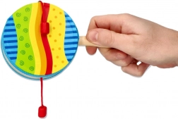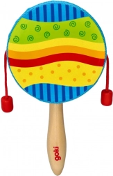 A hagyományos „kereplődob” modern változata a GOKI-tól nagyszerű kísérő hangszer gyerekeknek. Forgasd meg a nyelet, és a piros gyöngyök a zsinórokon ritmikusan a dobmembránhoz ütődnek. A forgatás sebessége természetesen változtatja a tempót és a hang karakterét, támogatva a hallási észlelést és a ritmusérzéket.