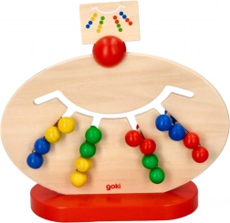 Fedezze fel a tanulás varázsát a Goki ovális játékkal, amely szórakoztató utat kínál a gyerekek képességeinek fejlesztéséhez. Ez a fa játék színes golyókat és különböző mintákat kombinál, amelyek támogatják a színek felismerését és osztályozó gyakorlatokat.