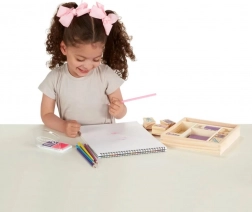 Ez a hercegnős bélyegzőkészlet Melissa and Doug márkától ideális a gyermekek kreativitásának és finommotoros készségeinek fejlesztésére. Minden darab gyönyörű mesebeli designokat kínál, mint például kastély, hercegnők, korona, üvegcipő vagy hintó. A készlet színes ceruzákat és két színű bélyegzőpárnát is tartalmaz.