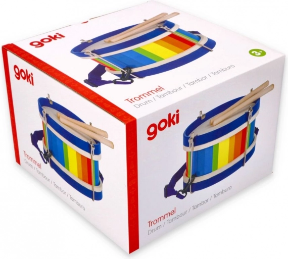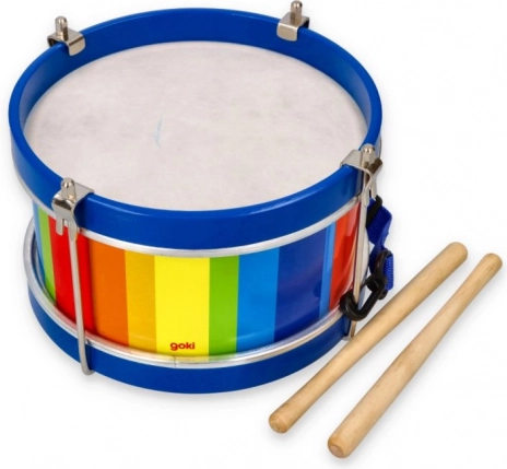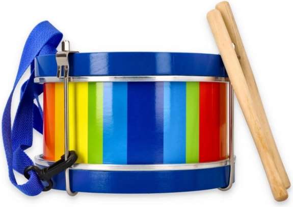 Színes dob a kis zenészeknek, amely támogatja a ritmusérzék és a motorikus képességek fejlődését a gyerekeknél. Ez a minőségi dob két fa dobverővel és állítható pánttal van felszerelve a könnyű hordozhatóság érdekében.