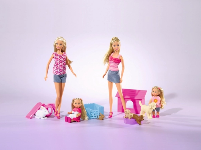 Fedezze fel a szórakozással teli világot a népszerű Steffi és Evi babákkal! Ez a készlet két változatot kínál, mindegyik más-más aranyos állatkákkal, amelyeket gyermeke azonnal megszeret.