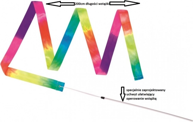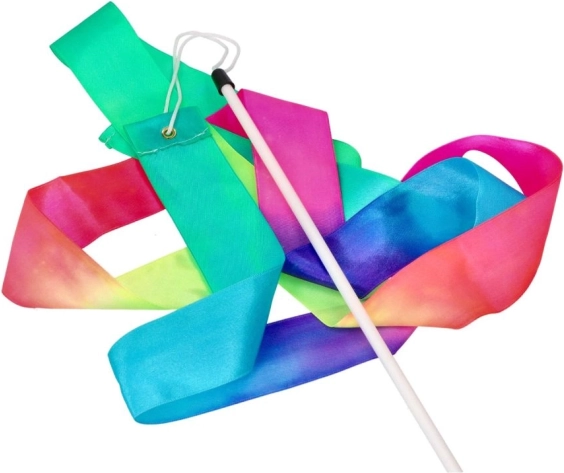A sokszínű szalag forgatáskor és lengetéskor gyönyörű mintákat rajzol, amelyek motiválják a gyerekeket a mozgásra és a kitartásra.