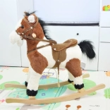 Ez a varázslatos hintaló puha, kiváló minőségű plüssből készült, ami kellemes tapintást biztosít. Kiemelkedő jellemzői a fa hintalécek és a masszív fa kapaszkodók, amelyek stabilitást és biztonságot nyújtanak játék közben. A ló nyereggel, kengyellel és kantárral van felszerelve, ami tovább fokozza a valódi lovaglás élményét.