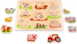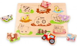 Fedezze fel a farm varázsát ezzel a fa kirakóval. A gyerekek lelkesedéssel fedezik fel a farmból vett jeleneteket és karaktereket, amelyek bemutatják a vidéki életet. A speciális fogantyúk megkönnyítik az egyes darabok kezelését, így a játék a legkisebbek számára is alkalmas.
