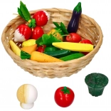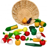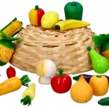 A friss gyümölcsöket és zöldségeket tartalmazó kosár ideális készlet boltos szerepjátékhoz.