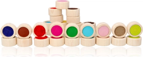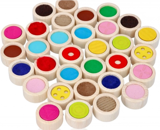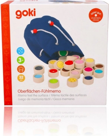 A fa tapintó memóriajáték ideális tapintási és érzékszervi észlelések stimulálására. Tömör fa hengeralakú játékkövek 4 cm átmérővel és 16 különböző felülettel rendelkeznek. A játék csukott szemmel játszható kihívásként az azonos felület megtalálásához vagy klasszikus memóriajátékként, a kövek színes oldalával lefelé fordítva.