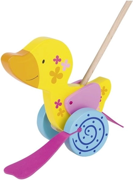 Ez a tömör fából készült húzható játék úgy lett tervezve, hogy ne csak megjelenésével, hanem mozgásával is lekösse a gyermekeket. A kacsa hintázik, csapkod a szárnyaival, és lábai vidáman csapódnak a földhöz menet közben. Ez nemcsak a gyermekek motoros képességeit támogatja, hanem egyensúlyérzéküket is fejleszti, és örömöt nyújt a mozgásban.