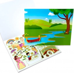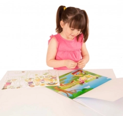 A matricák többször felhelyezhetők és áthelyezhetők, így a gyerekek könnyedén változtathatják a történetet és új jeleneteket állíthatnak össze.
