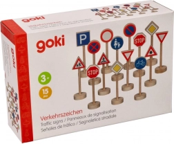 Fedezze fel a Goki fa közlekedési táblák szórakoztató és oktató készletét, amely segít a gyerekeknek játékosan elsajátítani a közlekedési szabályokat. A tömör fából készült, egészségre ártalmatlan festékekkel színezett táblák ideálisak kisautókhoz és autópályákhoz is. Könnyen kézben tarthatók, 11 cm magasak, a csomagban pedig 15 darab található a valósághű közlekedési helyzetekhez.