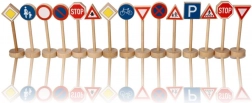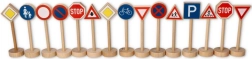 Változatos táblákat tartalmaz, mint Stop, Gyalogos-átkelő vagy Parkoló. Minden tábla magassága 11 cm a könnyű megfogásért.