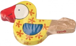 A síp madár formában van tervezve, élénk színekkel, hogy felkeltse a gyerekek figyelmét és érdeklődését.