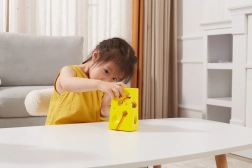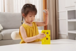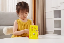 Ez a sárga „sajt” lyukakkal és piros, egérkés zsinórral játékos formában ösztönzi a gyerekeket az ujjak tornáztatására. A különböző helyeken lévő lyukakon való átfűzés támogatja a kézügyességet, a mozgások szimmetriáját és a logikus gondolkodást.