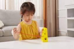 A zsinór átfűzése a lyukakon erősíti az ujjakat, javítja a fogást és a kéz–szem koordinációt – ideális felkészülés az írásra.
