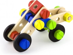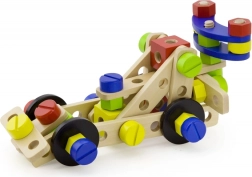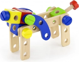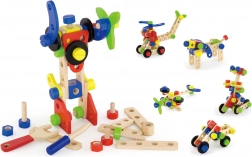 Ez a sokoldalú fa építőkészlet végtelen építési lehetőséget kínál – kis járművektől és állatoktól a helikopterig vagy robotig. A masszív fa elemeknek, csavaroknak és csatlakozóknak köszönhetően a gyerekek fejleszthetik a kéz–szem koordinációt, és elsajátíthatják a konstruktív gondolkodás alapjait.