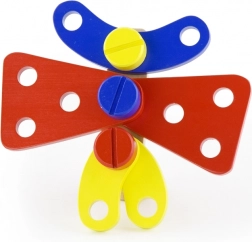 • 68 fa elem vidám színekben – csavarok, anyák, lapocskák, kerekek és csatlakozók