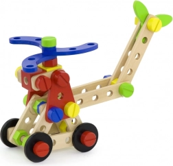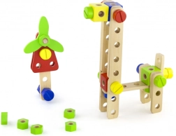 Változatos csavarok, anyák, lapocskák és kerekek teszik lehetővé tucatnyi modell megépítését – az állatkákon át a kis járművekig és helikopterekig. Ideális a fantázia és a türelem fejlesztésére.