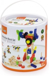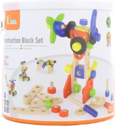 Fedezd fel a kreatív szórakozást ezzel a fából készült építőkészlettel gyerekeknek, amely 68 darabot tartalmaz. Minden elem minőségi fából készült, és egy praktikus vödörben kapott helyet az egyszerű tárolásért. A csomag része egy inspirációs füzet is építési ötletekkel. Ideális 3 éves kortól – fejleszti a finommotorikát, a kreativitást és a logikus gondolkodást.